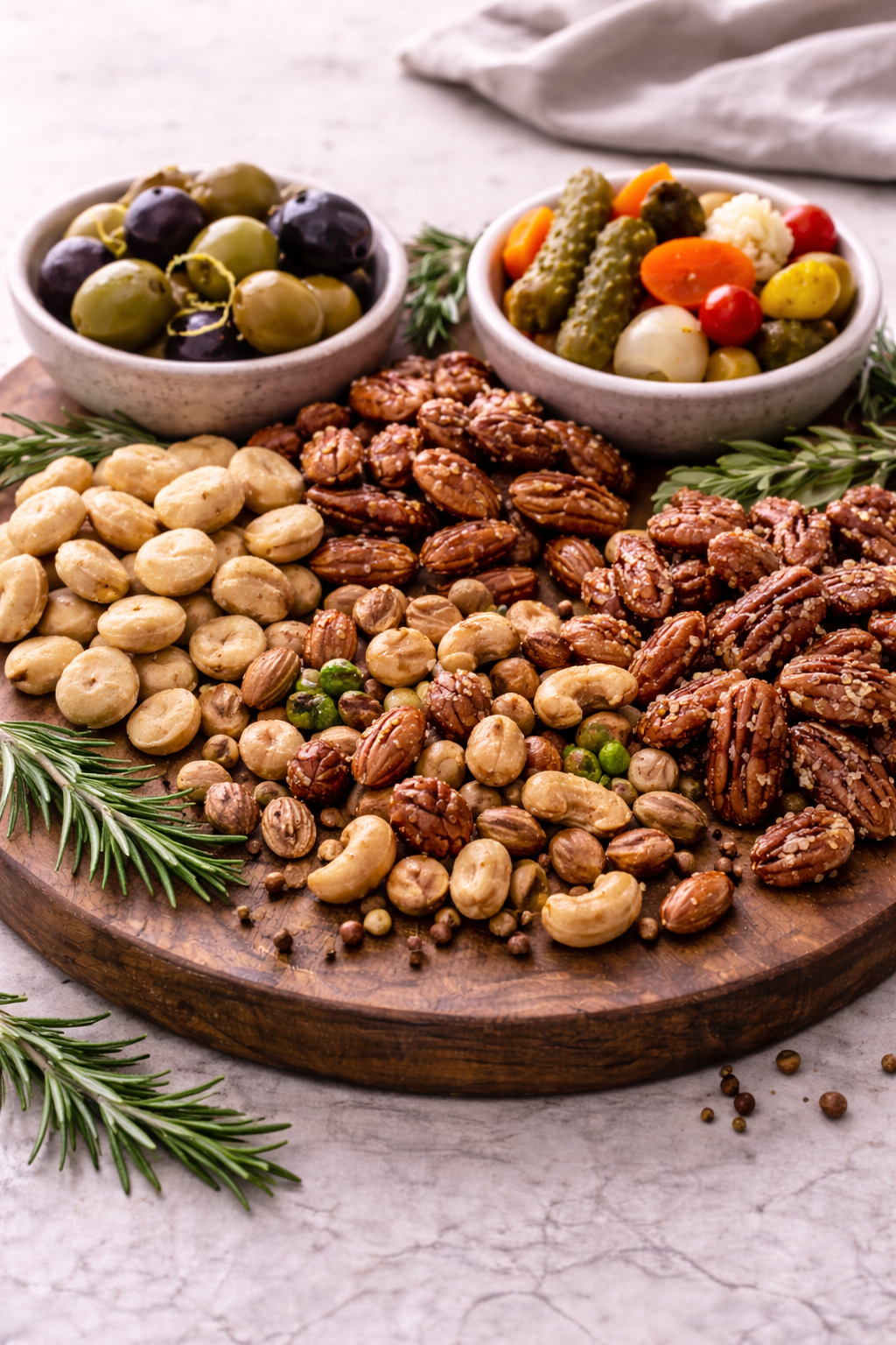 Our menu is thoughtfully curated to balance flavor, presentation, and effortless grazing. Each selection is chosen for its quality, pan-friendly presentation, and ability to shine in a shared, social setting.